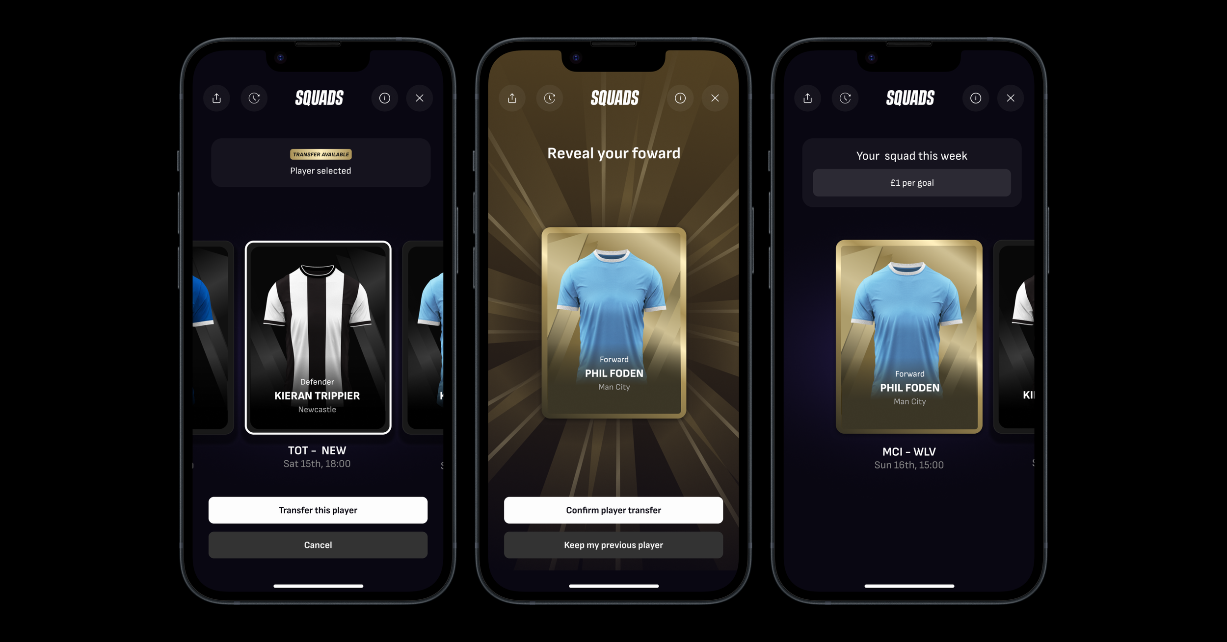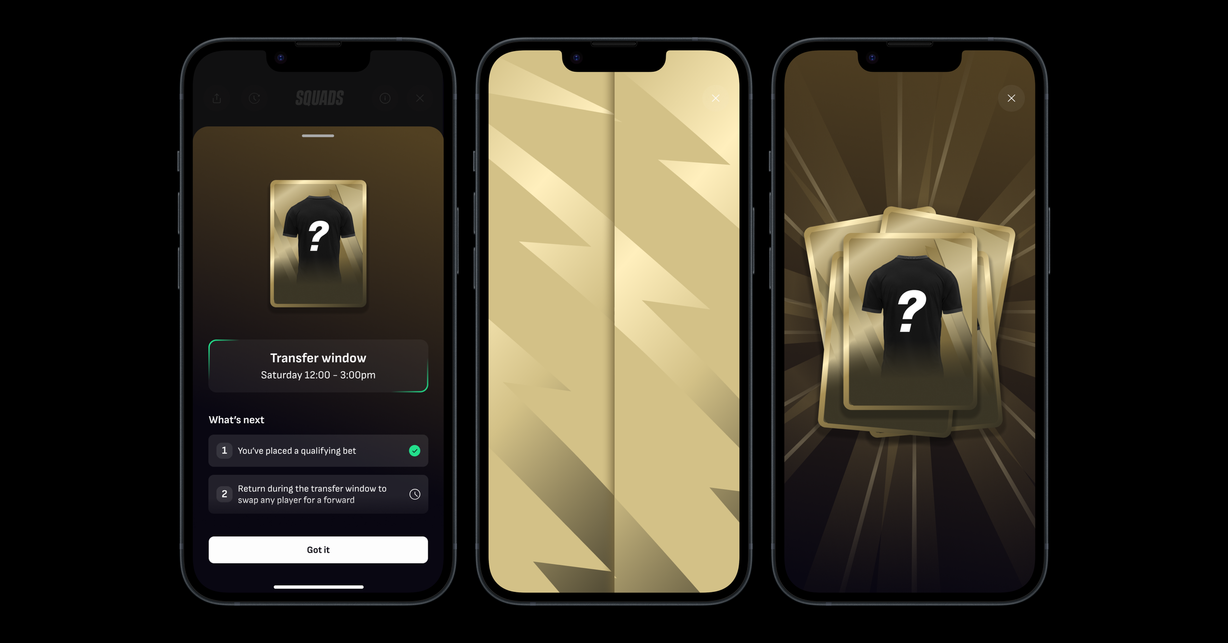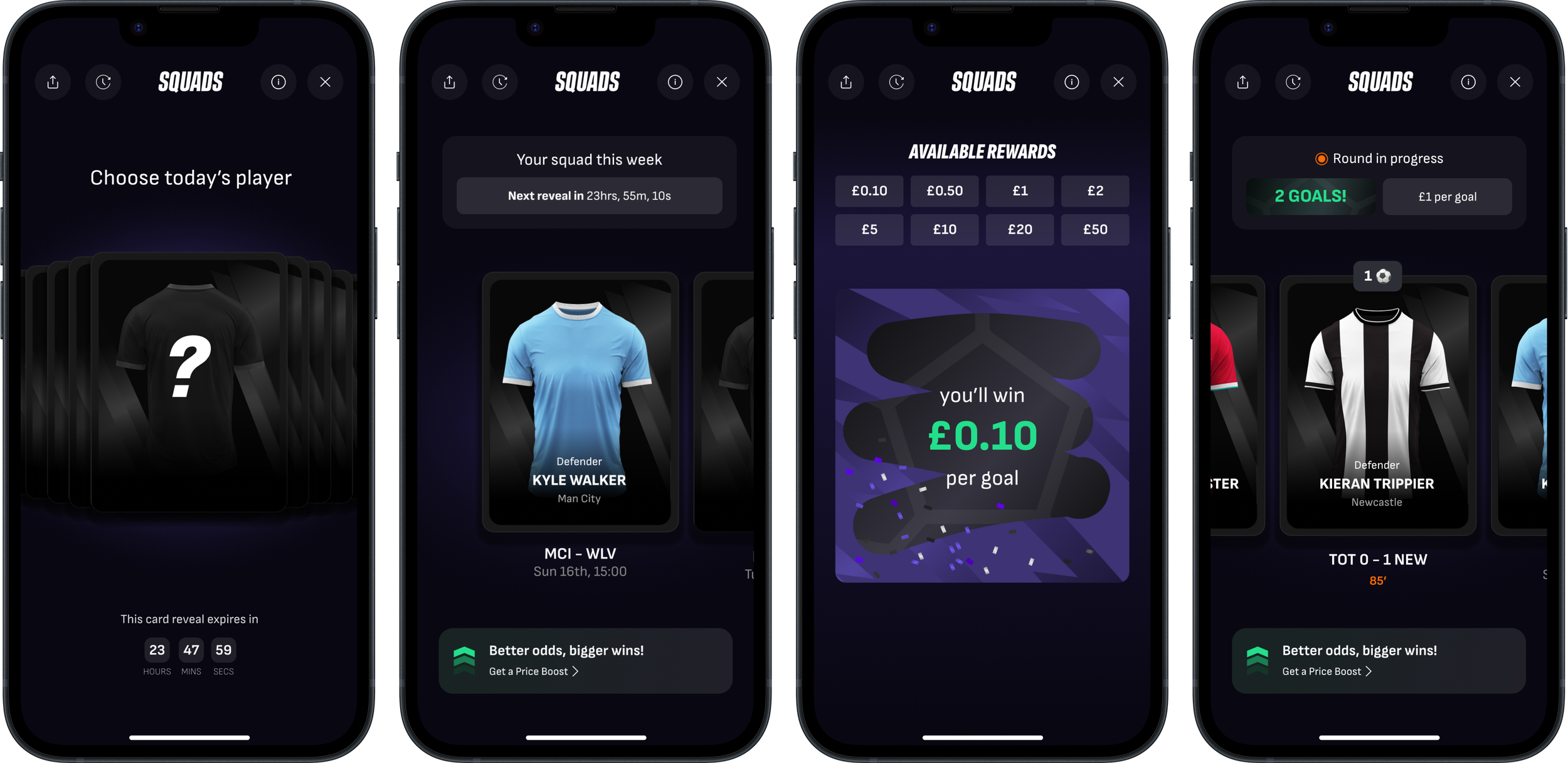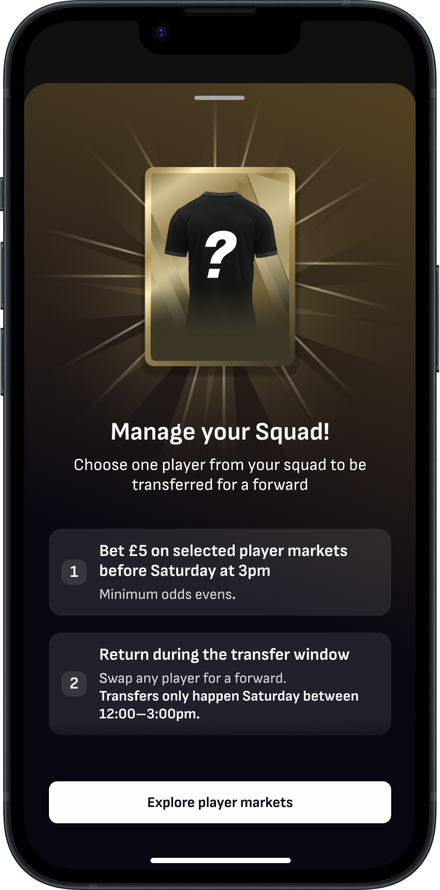 Repurpose promo banners and make them relevant to users’ player reveals, using logic to display the right promotion or betting market based on users’ betting behaviour and the Squads player revealed that day.