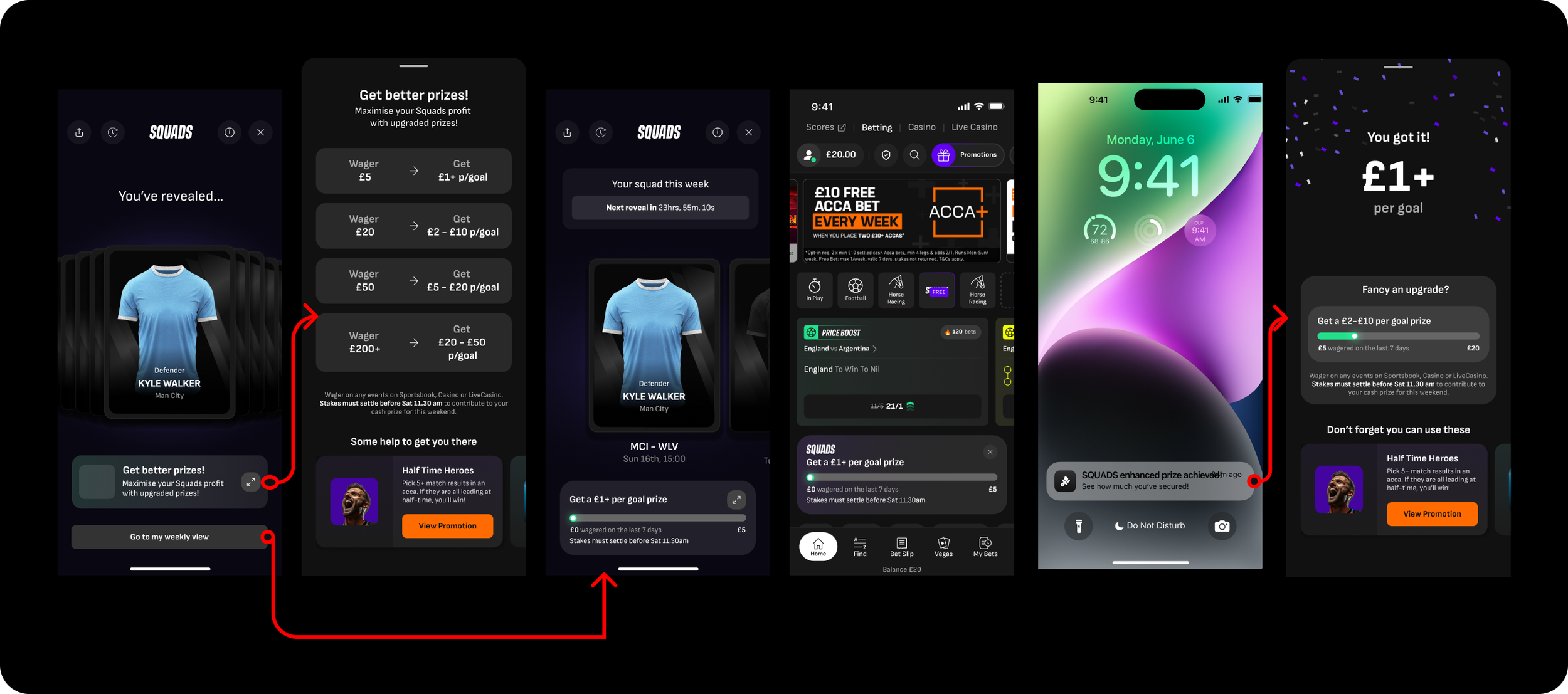 The betting requirement connected the two habits identified in the opportunity statement — playing Squads daily and betting weekly — creating a direct relationship between them within our platform for the first time.